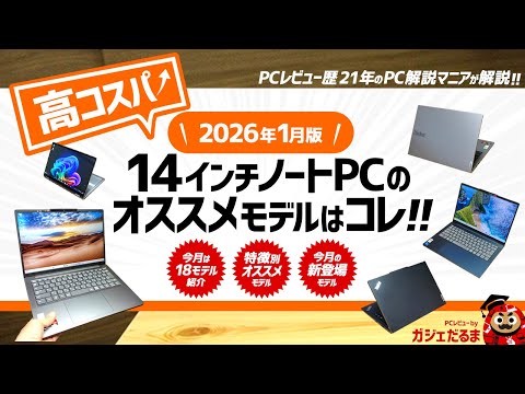 【2026年1月版】高コスパ14インチノートPCのオススメモデルはこれ!:PCレビュー歴21年のPC解説マニアがオススメ14インチモデルについて詳しく解説します(イチオシ/特徴別モデル)